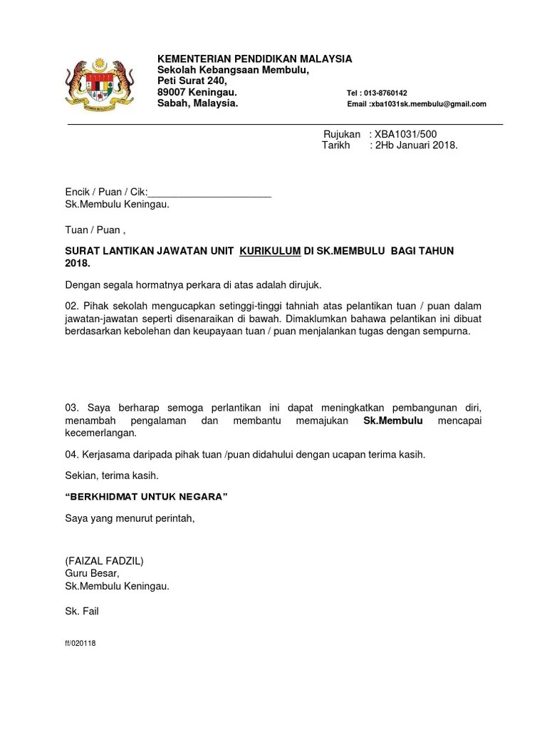 Contoh Surat Perlantikan Jawatan : 15 Kew Pa 15 Surat Lantikan Ahli Lembaga Pemeriksa